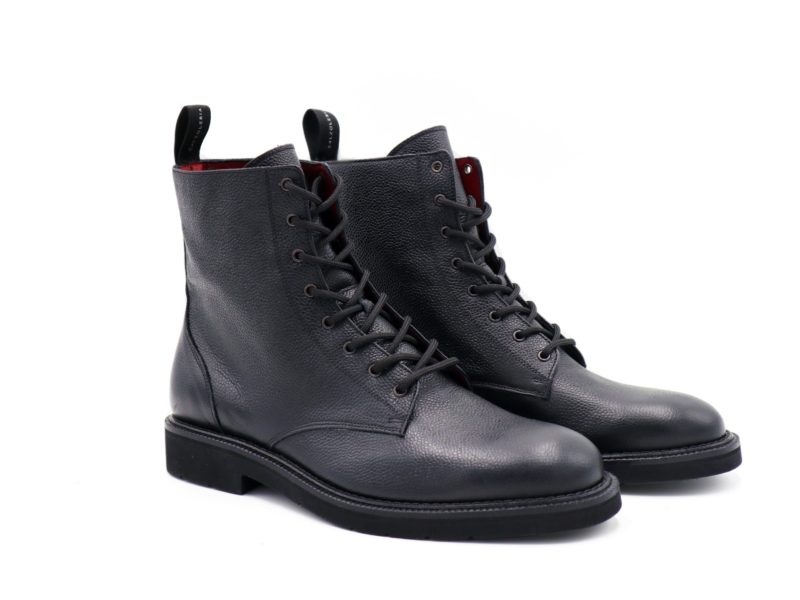 A bold and versatile style, this lace-up ankle boot is made of black grained calfskin, giving it a rugged and refined look. The grained texture of the leather adds character and durability, making this stiletto perfect for tackling any occasion with elegance.