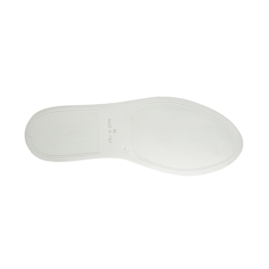Internamente, la scarpa è foderata in pelle di vitello traspirante, con una suoletta anatomica comfort rivestita in pelle, per garantire benessere e supporto durante tutta la giornata. La suola in gomma EVA superleggera, cucita alla tomaia, assicura resistenza, flessibilità e leggerezza.