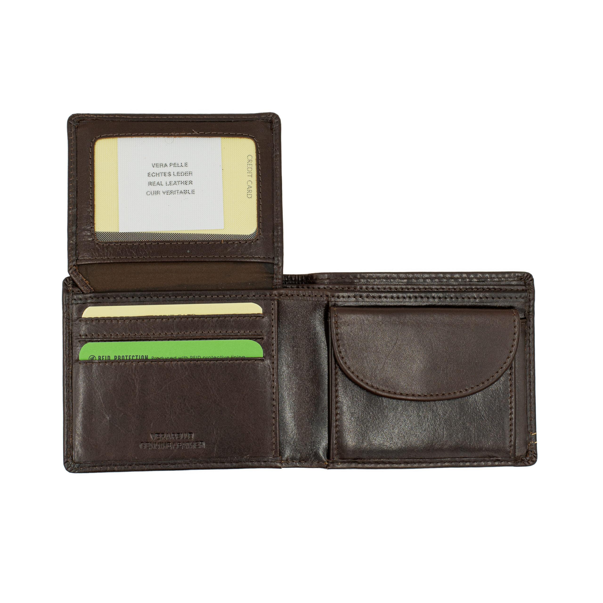Portafoglio in Pelle con Portamonete Color Testa di Moro